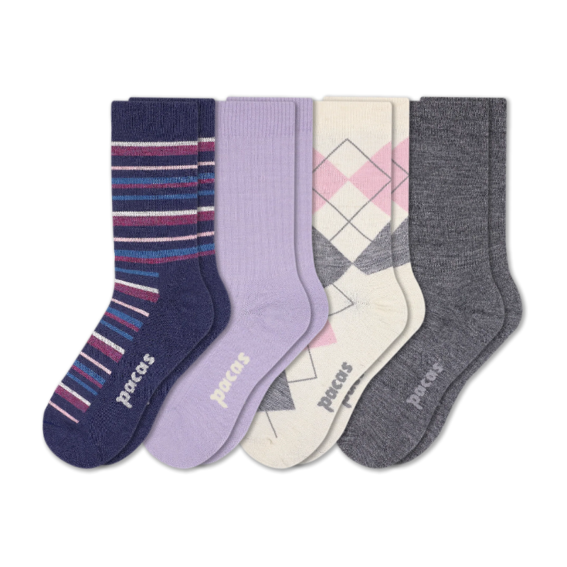 Charcoal/Lilla & VARIEGATED STRIPE/Marine & ARGYLE/Ivory & RIB/Purple
